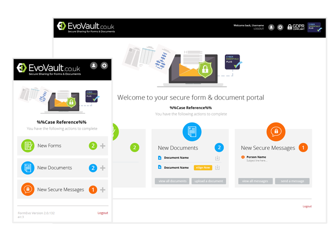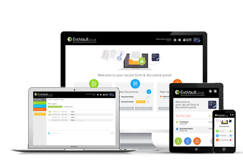 EvoVault is part of FormEvo and allows your clients secure form and document share access, eSign and a data retention policy, managed within FormEvo.