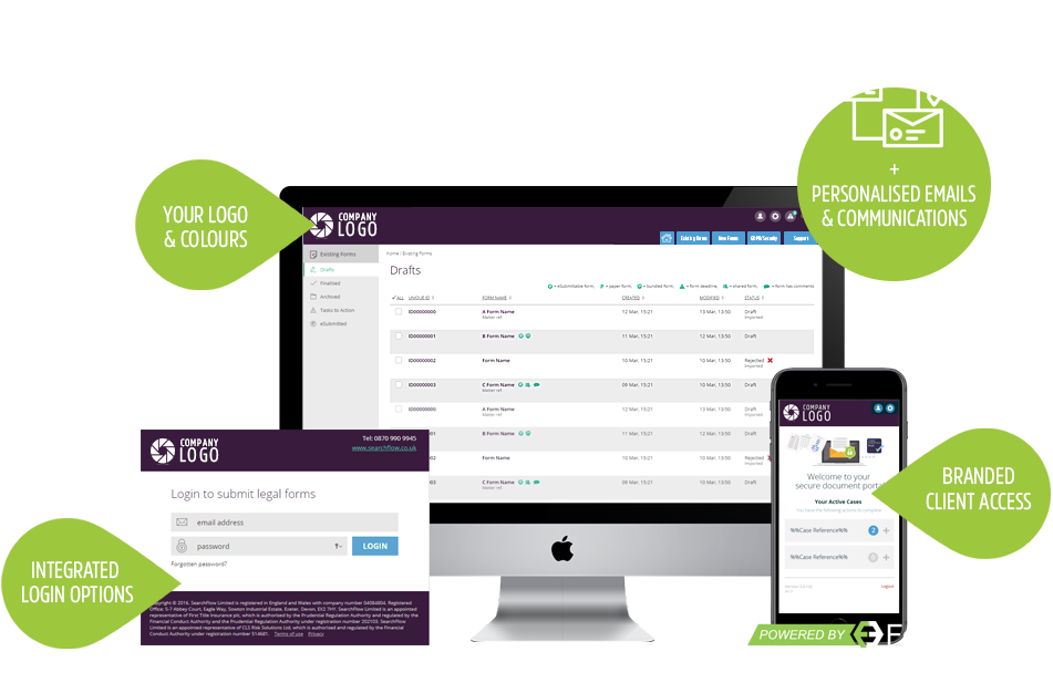 For the completely integrated solution we can brand your own version of our form’s application opened from either within your application or via links to another webpage.
