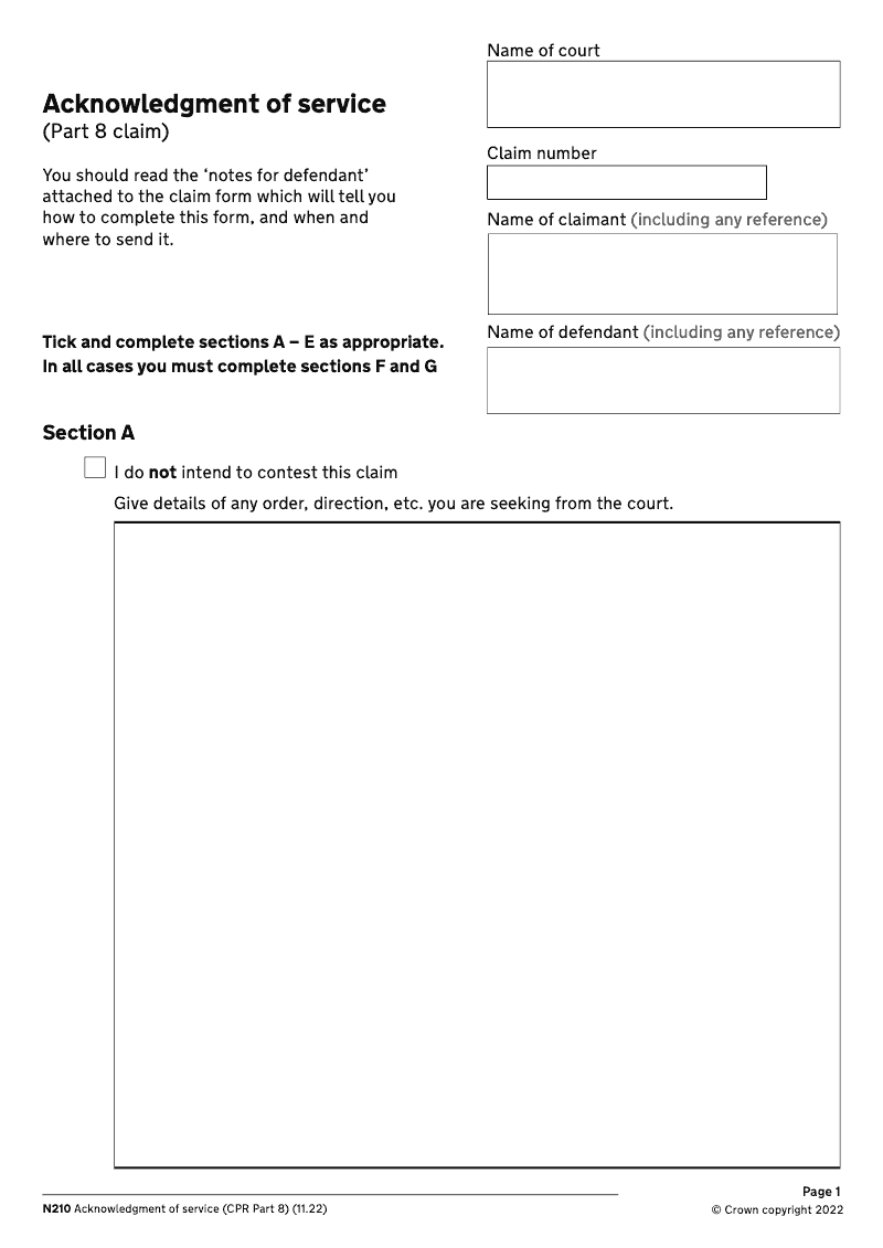 Acknowledgment of Service (Part 8 claim) [LT506] - extended version