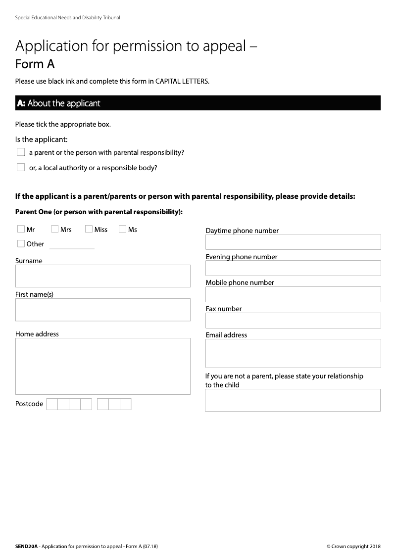 Application for permission to appeal (Form A) - electronic signature available