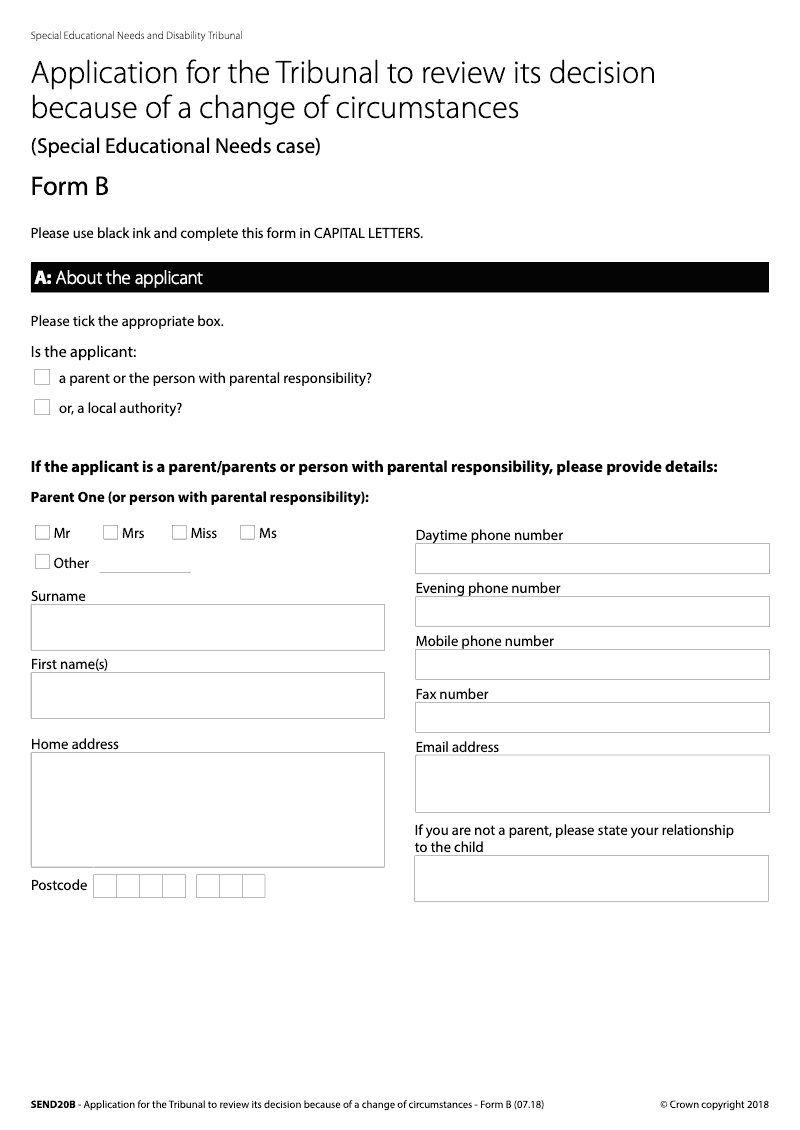 Application for the Tribunal to review its decision because of a change of circumstances (Form B) - electronic signature available