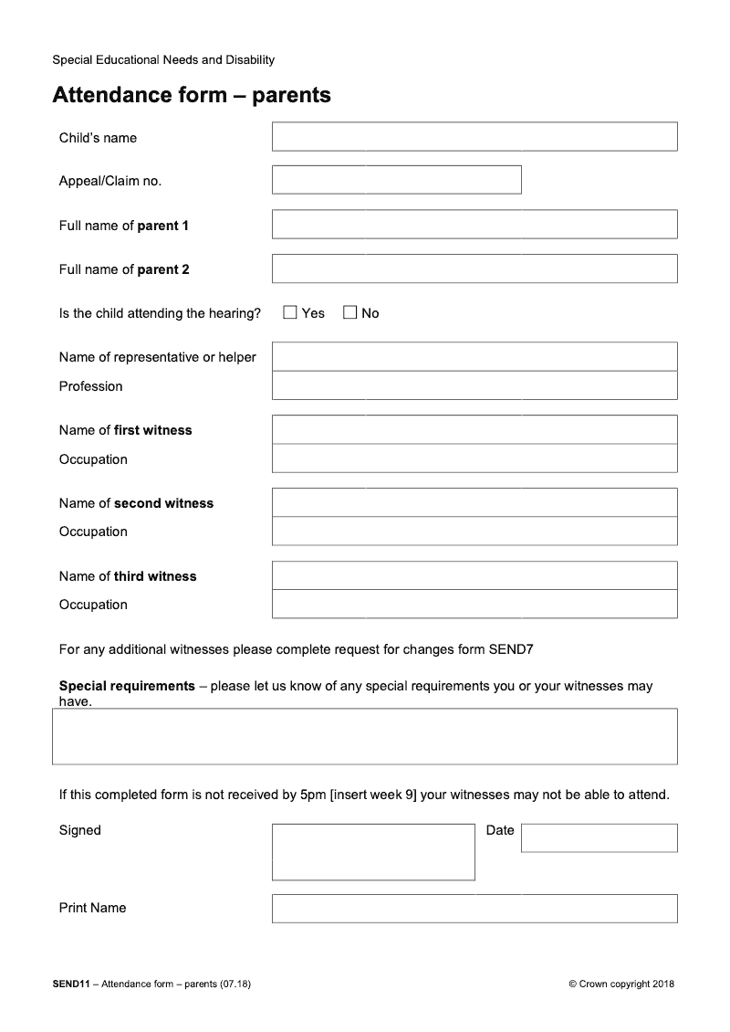 Attendance form - parents - electronic signature available