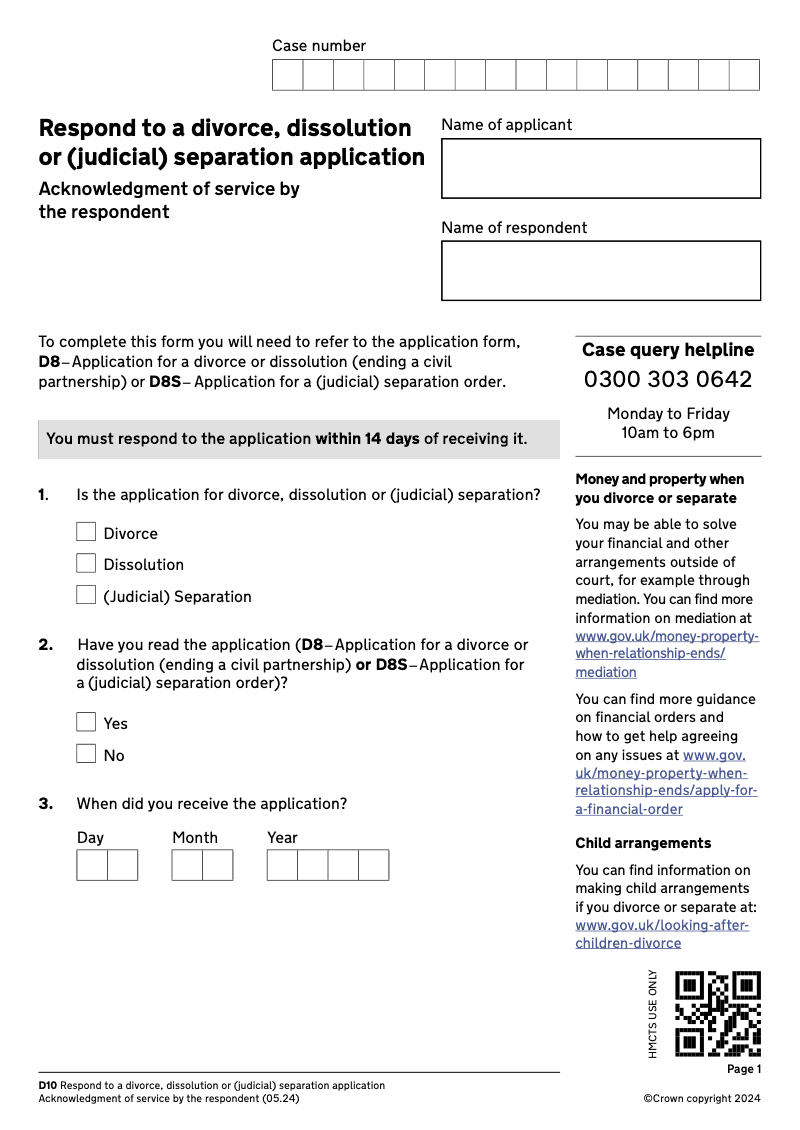 Respond to a divorce, dissolution or (judicial) separation application - electronic signature available