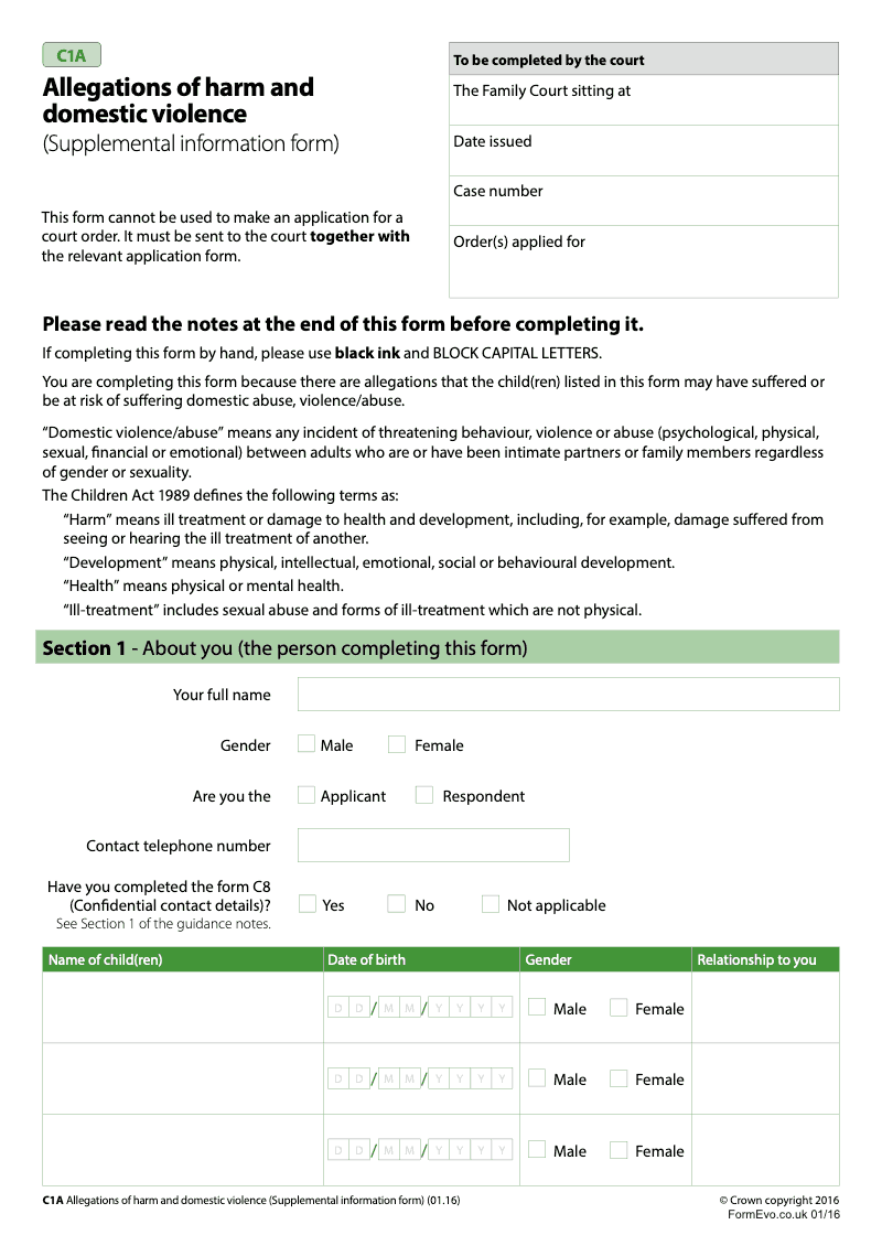 Allegations of harm and domestic violence (Supplemental information form) - electronic signature available