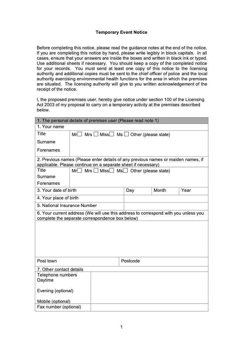 Temporary Event Notice