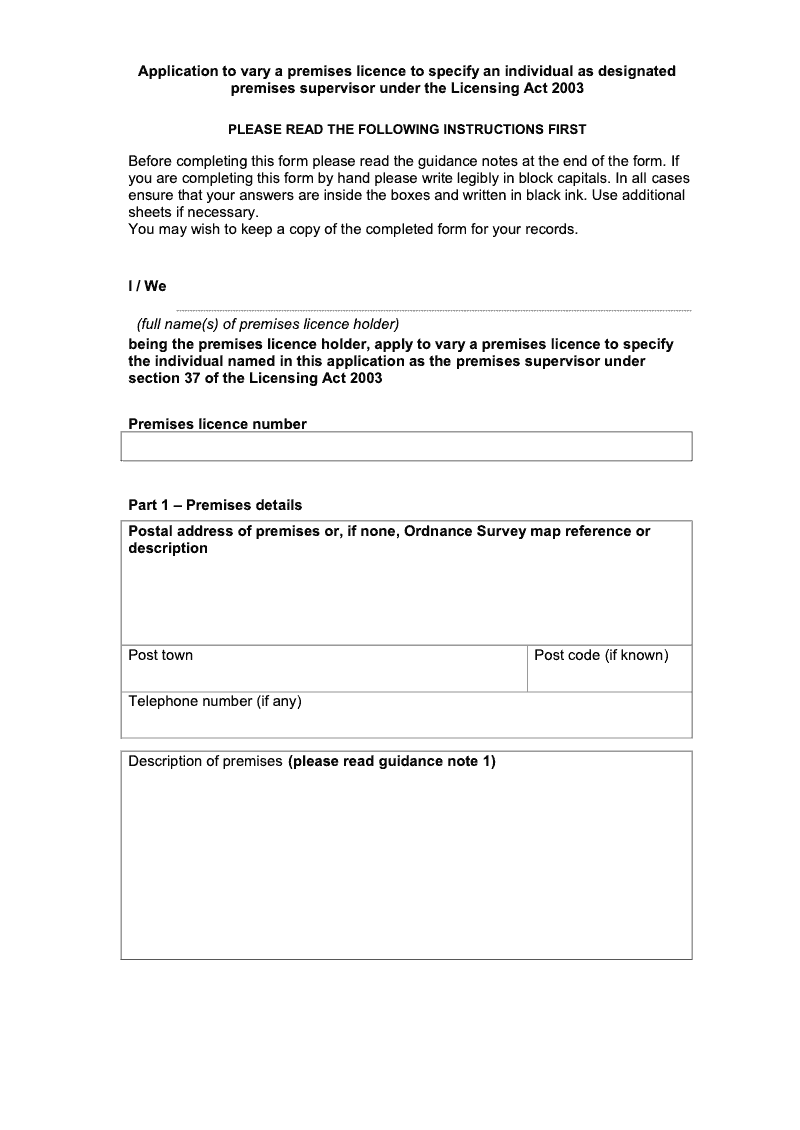 Application to vary a premises licence to specify an individual as designated premises supervisor under the Licensing Act 2003 (Schedule 5)