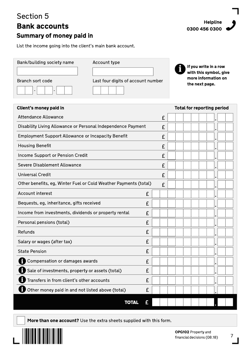 Deputy report form - Bank accounts