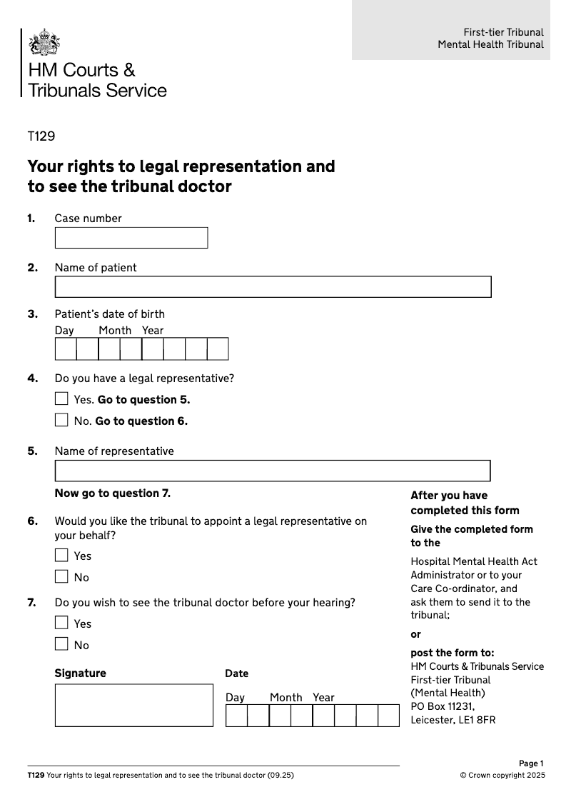 Your rights to legal representation and to see the tribunal doctor - electronic signature available